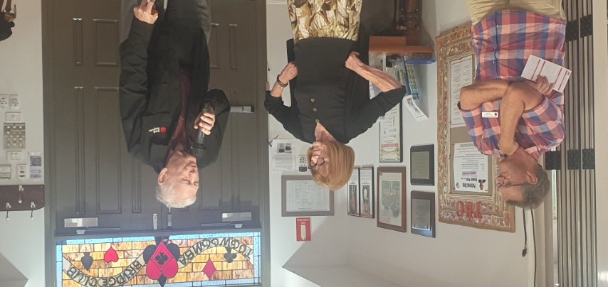 Toowoomba Bridge Club Patron - Clive Berghofer - being welcomed by Greg Munck (President) and Glenys Clift