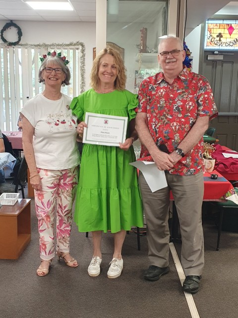 The following "Certificates of Achievement Awards 2025" were presented by Marie Steger and Chris Snook .... Local Master - Diana Bryant