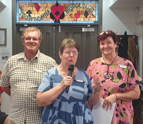 Players are welcomed by Toowoomba Bridge Club President, Greg Munck, Director Sue Holburt and Club Secretary, Kathy Duke.