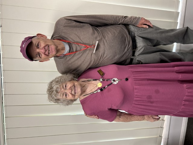 Toowoomba Bridge Club Patron - Clive Berghofer - being welcomed by Greg Munck (President) and Glenys Clift